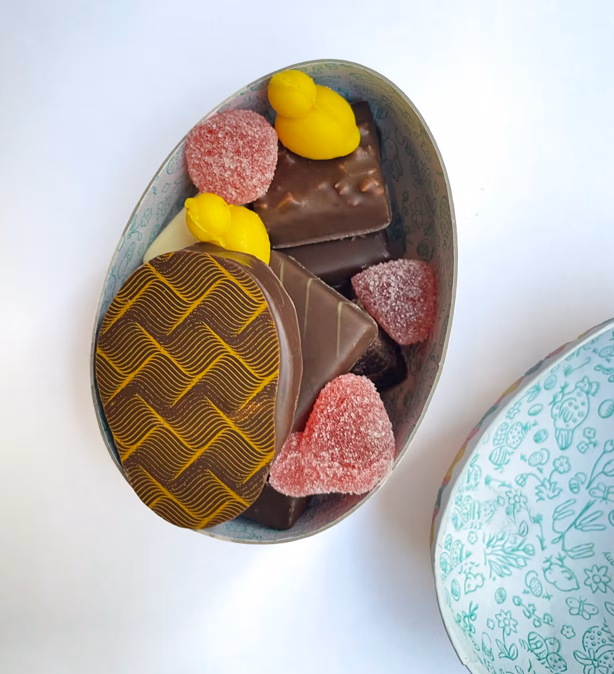 Våra påskägg är här – fyllda med härliga påskpraliner, marsipan, chokladägg och andra godsaker – allt från egen tillverkning.